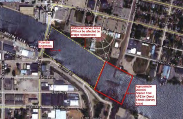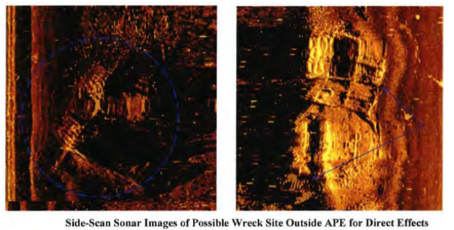 Figure 3. The object labeled “Potential Shipwreck” was relocated and the same position shown here.