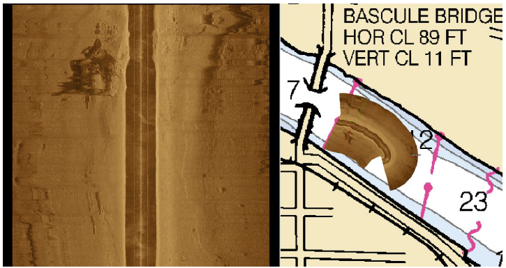 - The sonar provided track mosaic capabilities and real-time GPS gridding, allowing us to confirm our coverage areas, to see the location of objects relative to shore features and to have accurate GPS locations for every object mapped.