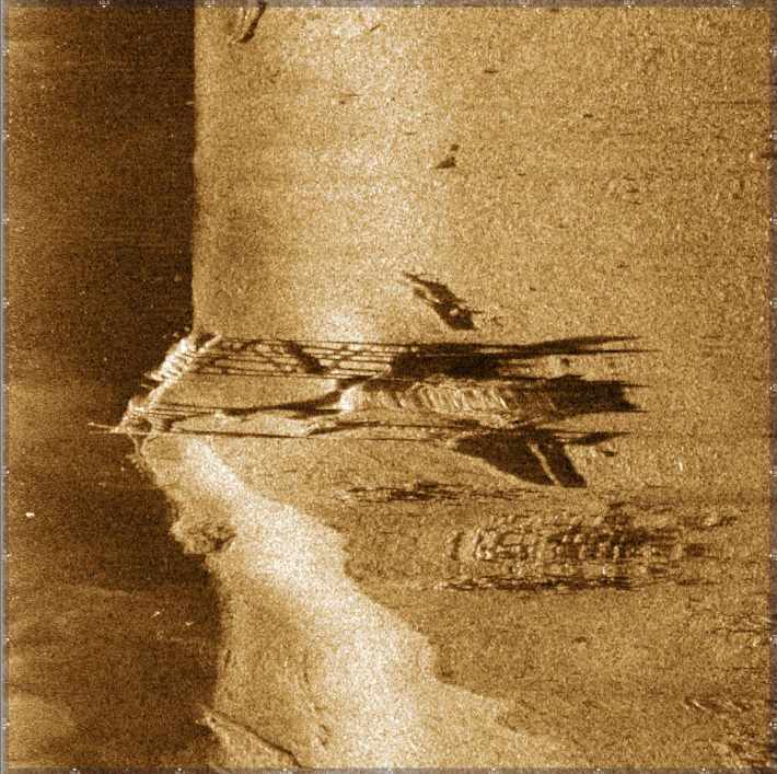 In October 2016, Kevin Cullen and Brian Abbott utilized a sector scanning sonar to survey a piece of vessel wreckage in the upper extent of the river, approximately .3 miles SE of the Hwy 21 bridge on the SW shore of the river. (See Fig 1.)